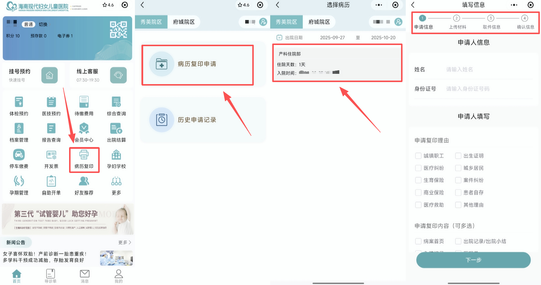 为优化医疗服务体验,海南现代妇女儿童医院推出病历复印线上申请及邮寄服务!无论你身处何地,只需动动手指就能完成申请,也可申请邮寄,在家坐等中国邮政EMS快递送件上门,为上班族、异地患者及行动不便等人群提供便捷。
