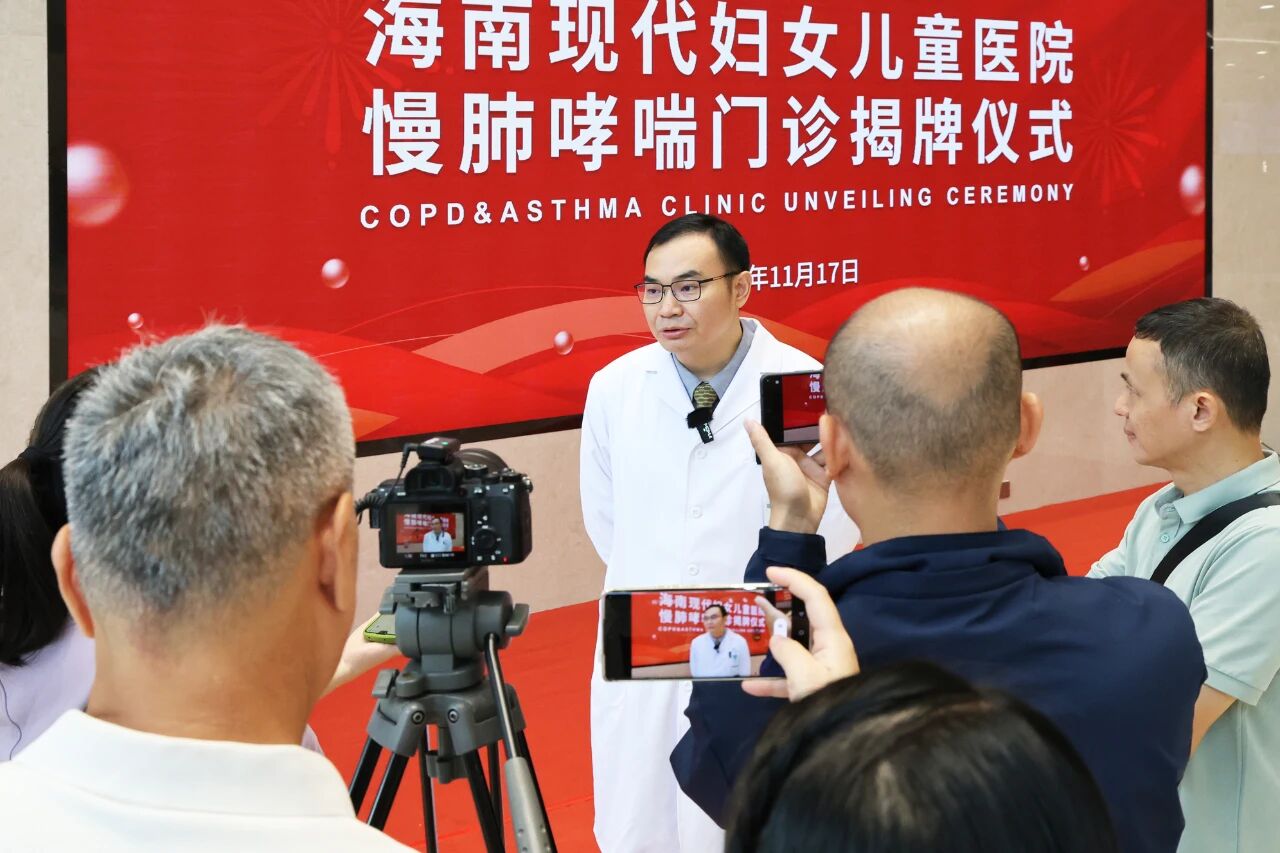 海南现代妇女儿童医院慢肺中心主任马明广接受媒体采访