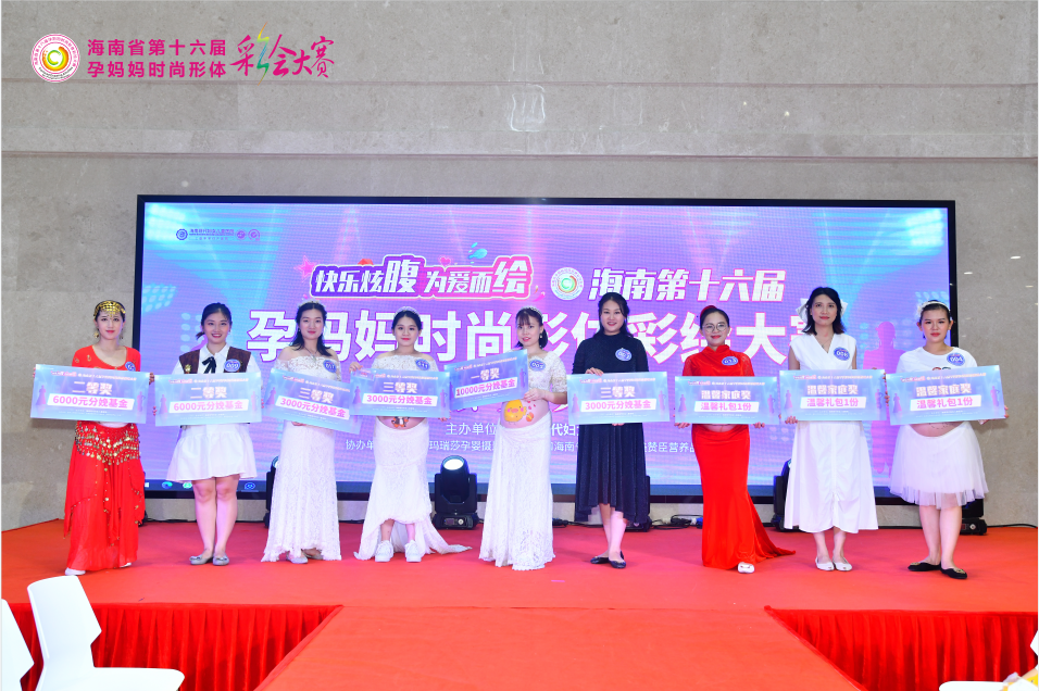 花式秀各式才艺,别样展孕味之美。2021年10月31日下午,海南现代妇女儿童医院开业嘉年华之第十六届孕妈妈时尚形体彩绘大赛总决赛在秀英院区激烈开赛。决赛现场,画着精致的妆容、肚皮上绘着各式有意义图案的孕妈大显身手,用精彩绝伦的表演晒出她们的孕味之美,吸引了上百位市民驻足观看,万名网友同步在线观看。经过激烈的比拼,5号孕妈吴明慧最终以精彩的葫芦丝表演、备孕养胎的感人故事摘得本次大赛的桂冠,将万元分娩大奖收入囊中,其他大奖也各归其主。