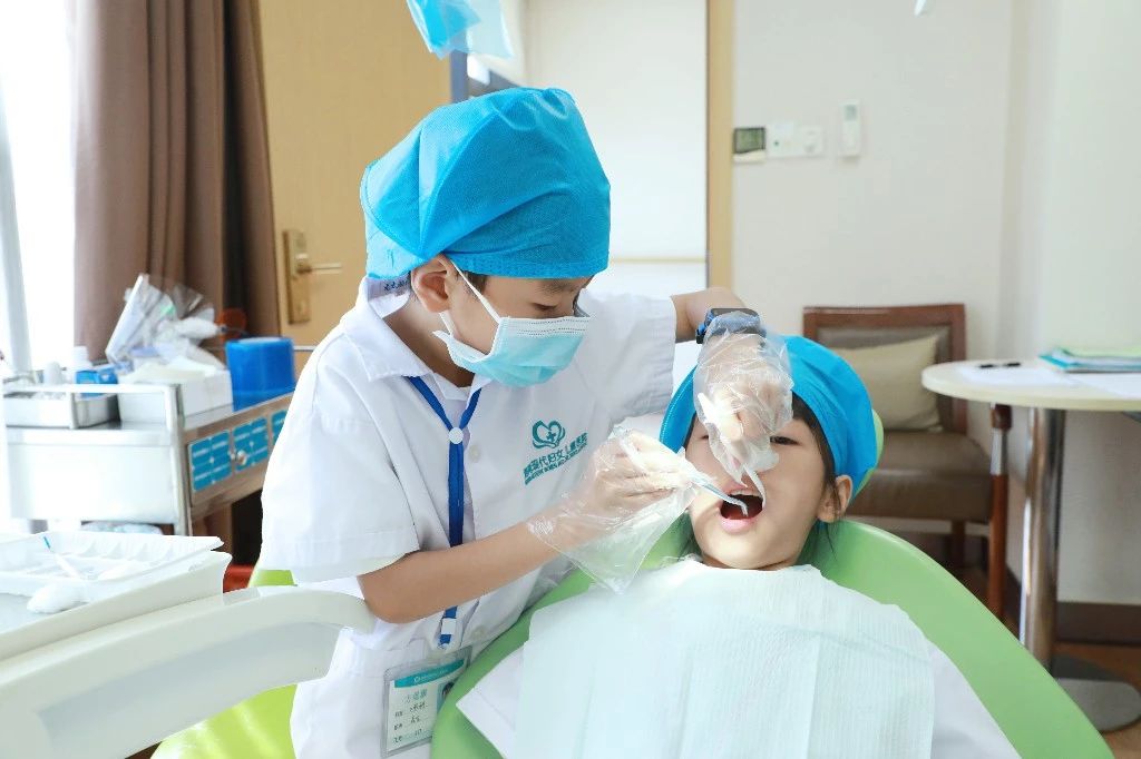 口腔科小医生在帮助带教老师进行口腔检查的同时,还学会了怎么正确地刷牙和保护牙齿,在总结分享会上,口腔科小医生说:“一天要刷两次牙哦。”以后全家按时刷牙的任务就交给你啦。