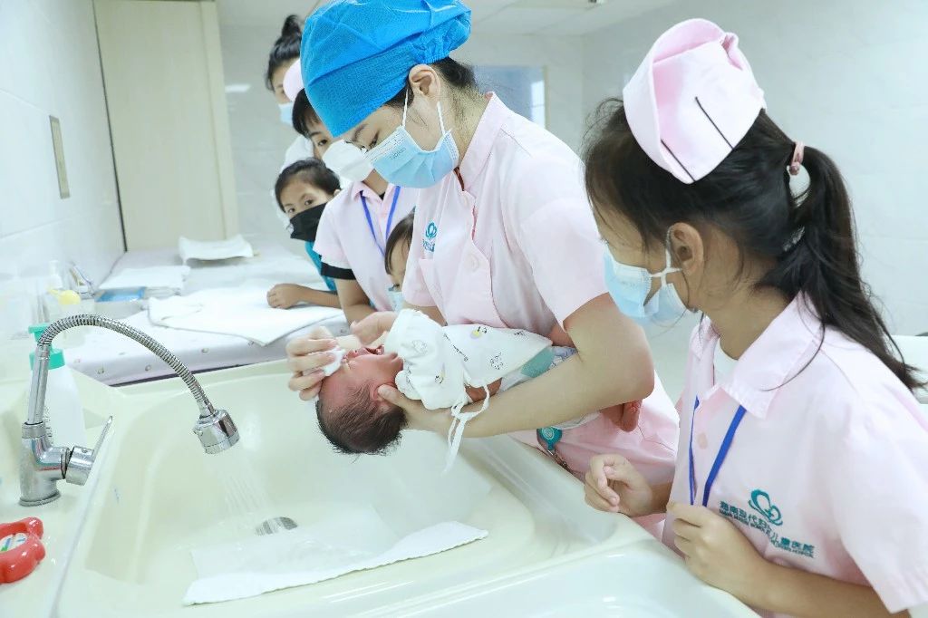 在产科住院部上班的小医护们那就真的忙忙忙,一个上午不仅要查房,还要学会给小宝宝洗澡,学习整理病例。在这个过程中,小医护们学习了怎么听产后妈妈的肠回音,测胎心量血压等等,看到小宝宝哭了,她们还能当起“临时妈妈”,哄宝宝的样子真是让人心都暖化了,别提有多能干了。