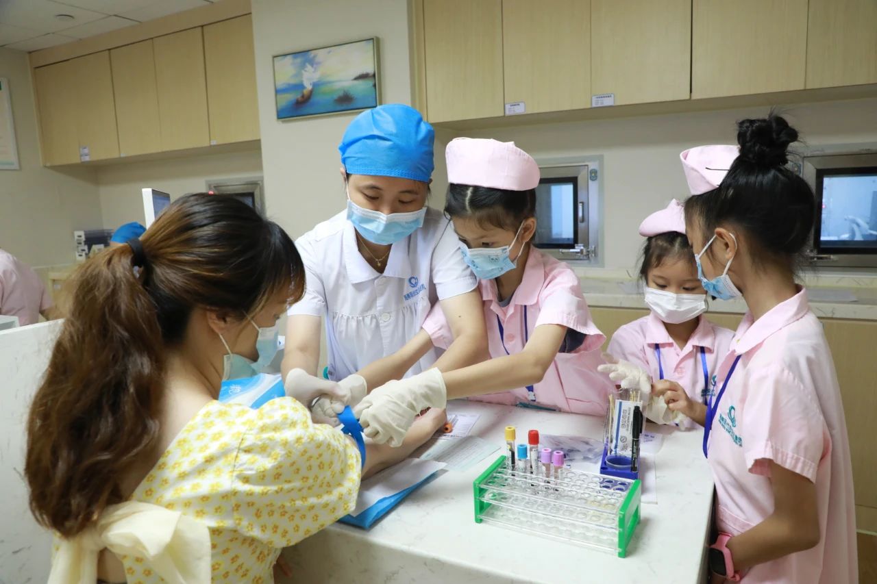抽血,对于抽血小护士而言真是极大地挑战,特别是年龄较小的小护士,刚开始的时候还不敢看抽血,在带教老师的鼓励下,小护士们都勇敢地上前操作,本来害怕抽血的小护士还认真地告诉我们:“抽血不可怕,以后我不会害怕抽血了。”真为她感到骄傲。